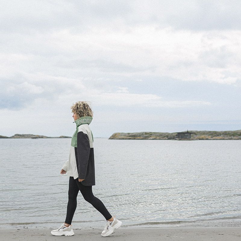 Thyra jacket lining fabric has been solution dyed – a technique that saves up to 80% water compared to conventionally dyed fabric in the same kind of material. Water repellent finish used on this product is free from defluorinated compounds. The products used are Rudolf Bionic-finish Eco or Huntsman Zelan R3. This garment is prepared for the future and made from 100% polyester fabrics including the membrane. When it is no longer fit for use, the fabrics are prepared to be recycled into material for a new garment.