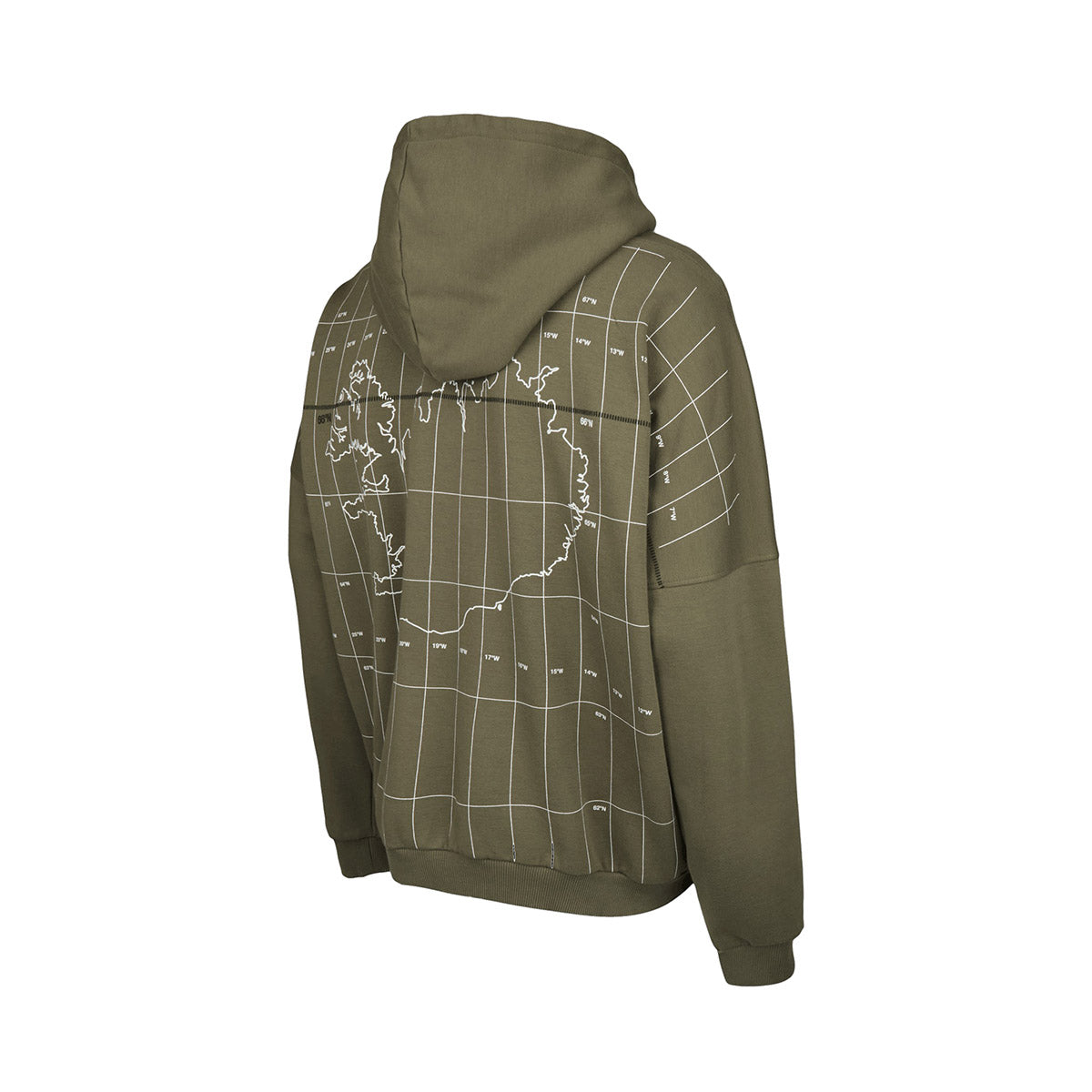 A relaxed over-size hoodie from 66 North the Sudureyri features a graphic print on the back with a map of Iceland with the 66 latitude running threw the small town of Suðureyri where the company was founded back in 1926.