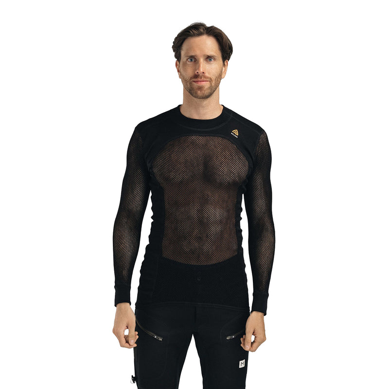 Aclima WoolNet is a base layer for varying activity levels all year round. The mesh construction of the WoolNet Men's Shirt has a unique ability to transport moisture away from the skin. As you move, the product breathes, and insulates when you stop. The sides are rib knitted for comfort and to preserve the shape of the product. You also have shoulder panels which make it comfortable to wear a backpack.