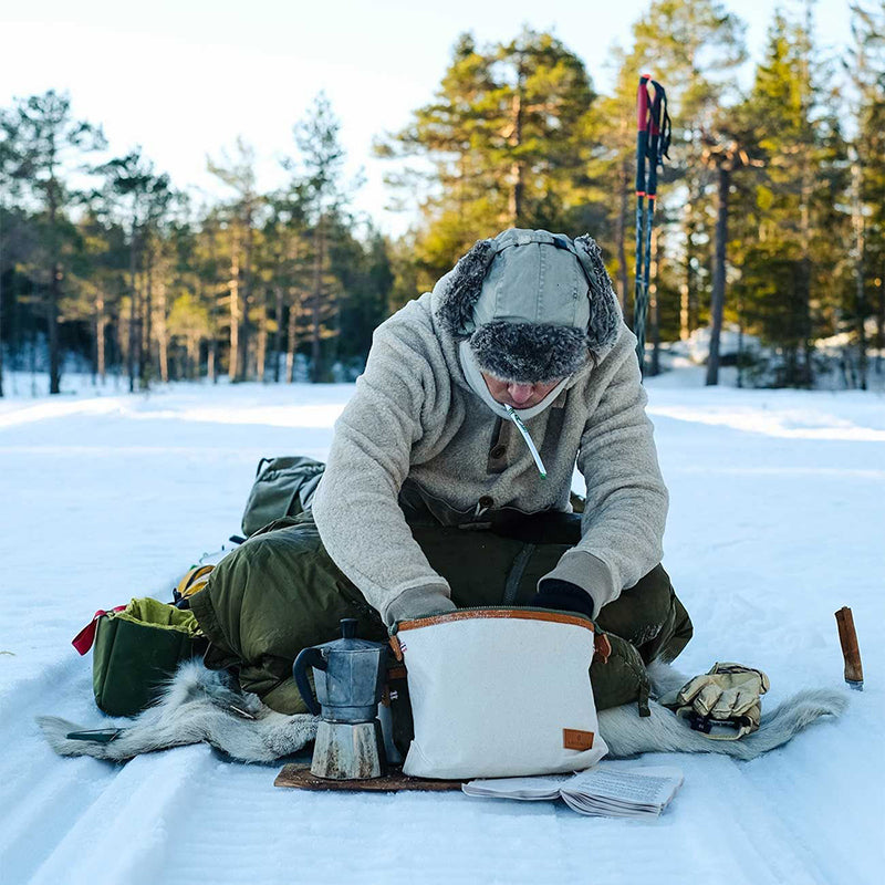 The classic Wash Bag from Amundsen Sports is the indispensable companion on every trip you make and helps you keep all your toiletries in place. Crafted from fully lined durable 16oz cotton canvas with trimming in cognac leather. This Wash Bag is made to travel the world, and it should, because the leather details will get richer patina the more you use it.