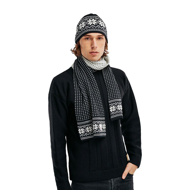 A stylish, warm and soft scarf featuring a traditional Norwegian pattern design. Made of 100% Merino wool, the Garmisch scarf is stain and water resistant, lightweight, itch free, breathable, and wicks moisture away from your skin. The scarf matches the men's and women's Garmisch sweaters.