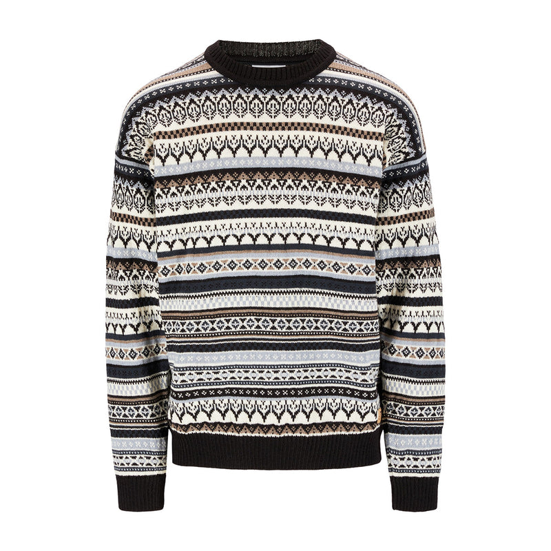 The Utsira has with a relaxed fit and round neck. The sweater is knitted in 100% long-lasting wool. The pattern is a mix of historical Dale patterns.