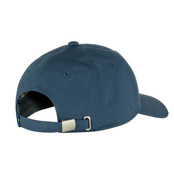 A comfortable cap featuring an embroidered Fjallraven logo. Durable and pliant G-1000 fabric. 65% recycled polyester, 35% organic cotton. with a metal clasp at the back for size adjustment and embroidered text at the front. A great everyday summer cap.