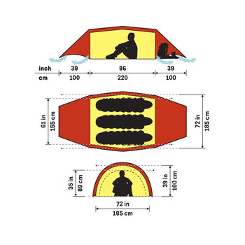 - Linked but seperable inner and outer tent for simultaneous pitching.