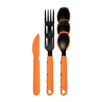 The Jetboil TrailWare Cutlery Set is the ultimate camp kitchen companion for the weight-conscious backpacker. This complete utensil set includes a knife, fork, and spoon, each thoughtfully designed to enhance outdoor cooking and eating.