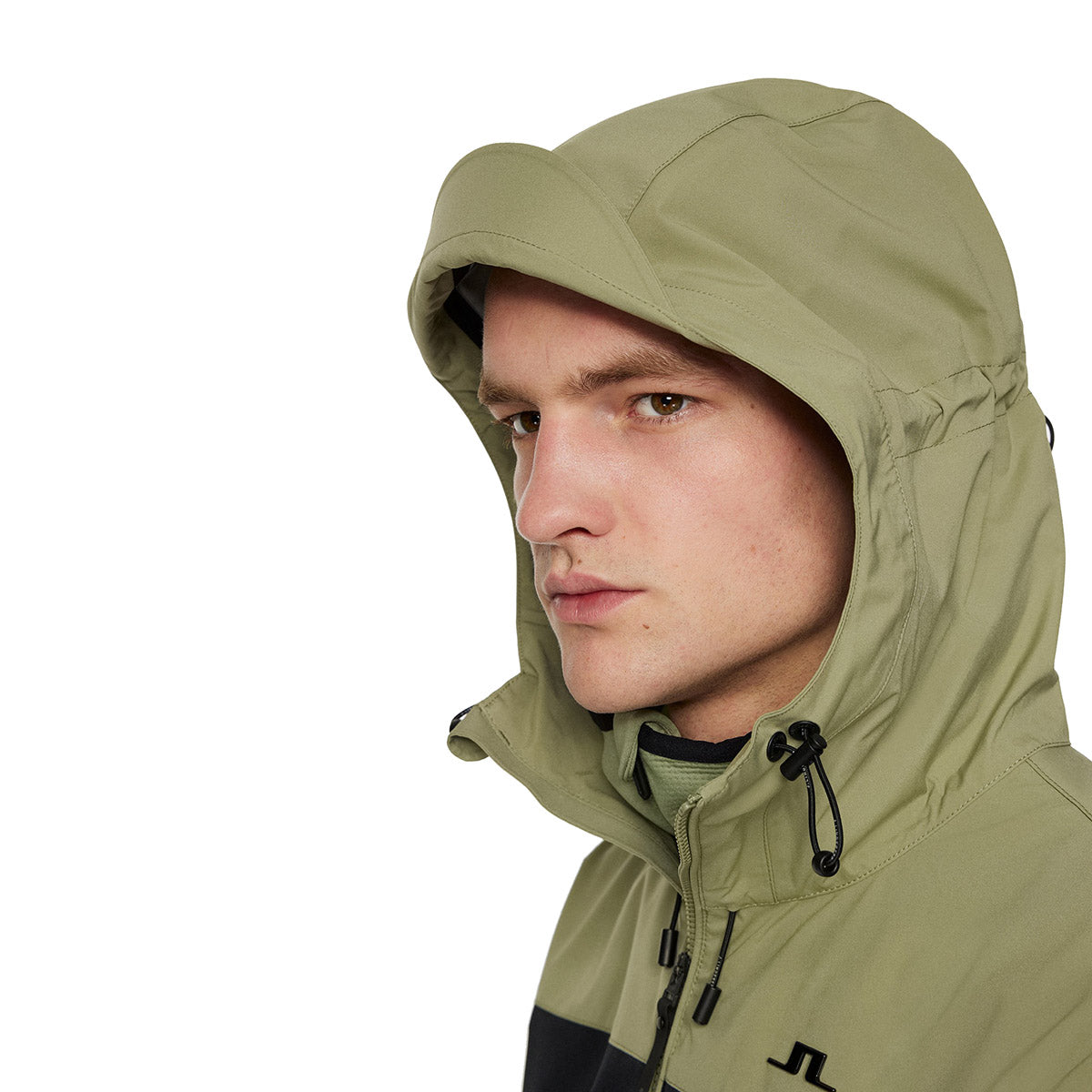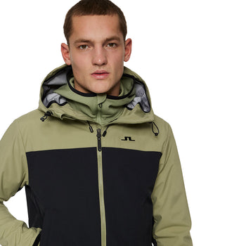Featuring a hood with adjustable cords, a branded Velcro tab on sleeves. With a inside pocket and two front pockets and finished off with a J. Lindeberg bridge logo on left chest.