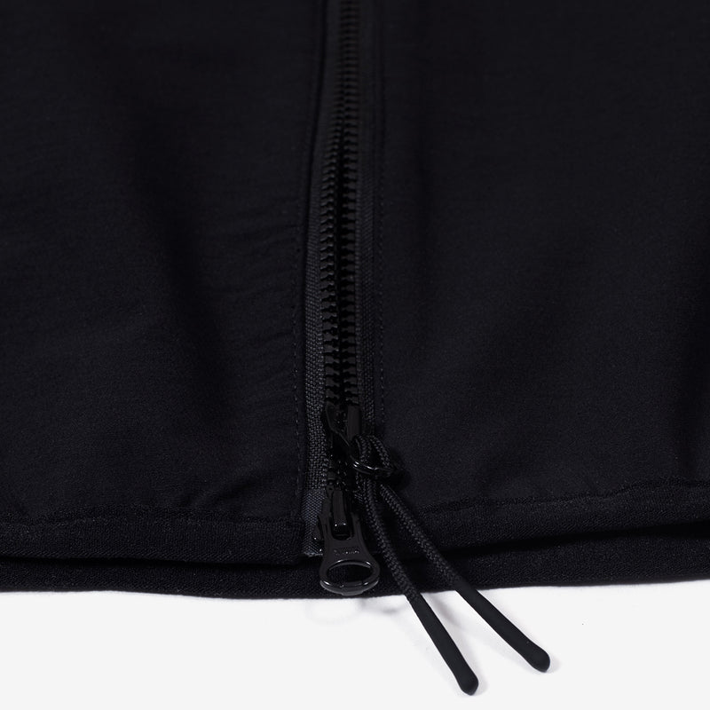 An adjustable hood with a reinforced brim offers additional coverage and protection from the elements, while the high collar and extended neck provide extra warmth and comfort. The full-length front zip with an internal wind flap and chin guard allows for easy on and off and customizable ventilation.
