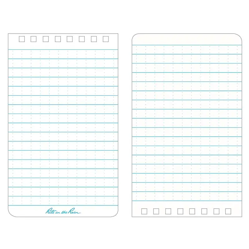The Rite in the Rain Top Spiral Notebook 3" x 5" (No. 135) is a compact, pocket-sized notebook built to withstand the harshest outdoor conditions. Featuring Rite in the Rain's legendary all-weather paper, this notebook lets you capture notes, sketches, and field data in rain, sweat, mud, and beyond — ensuring your writing survives when ordinary paper would fall apart.