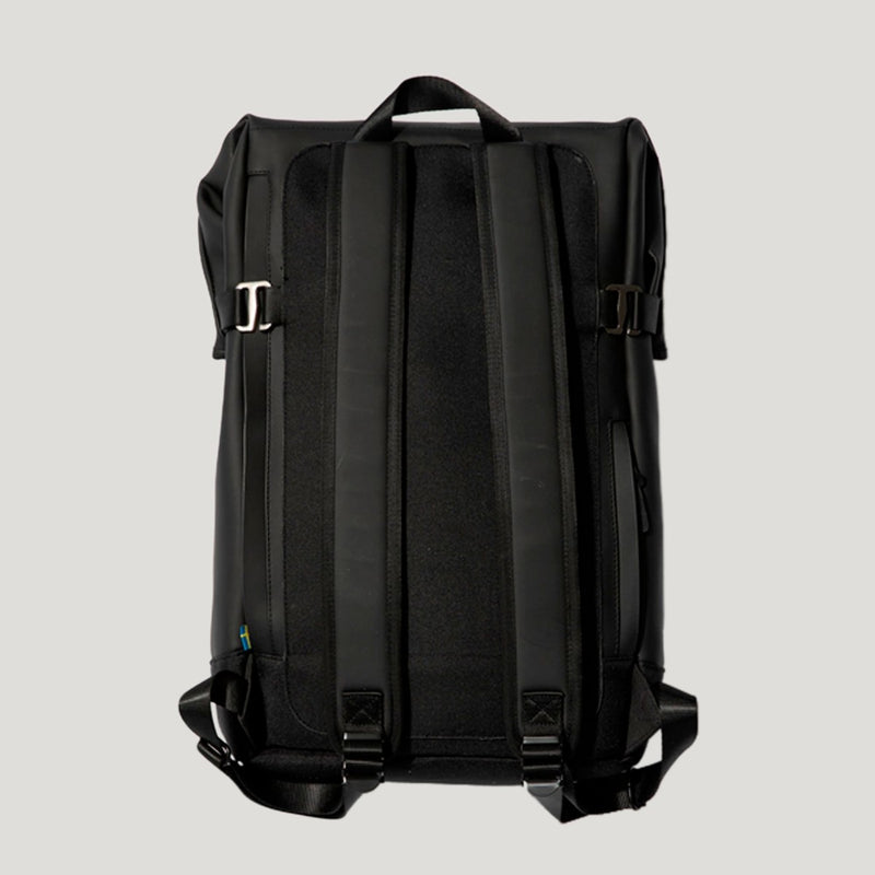 The Malmo Rolltop from Tretorn is a stylish and functional backpack perfect for everyday use. The rolltop opening also protects the contents from moisture and rain. The compact PU outer material protects against light rain and water. The bottom of the bag is reinforced to protect against moisture and wear. The bag features a protective laptop compartment with top-access and an extra laptop pocket with a side access zip. Ideal for the daily commute, cycling into town or short country walks.