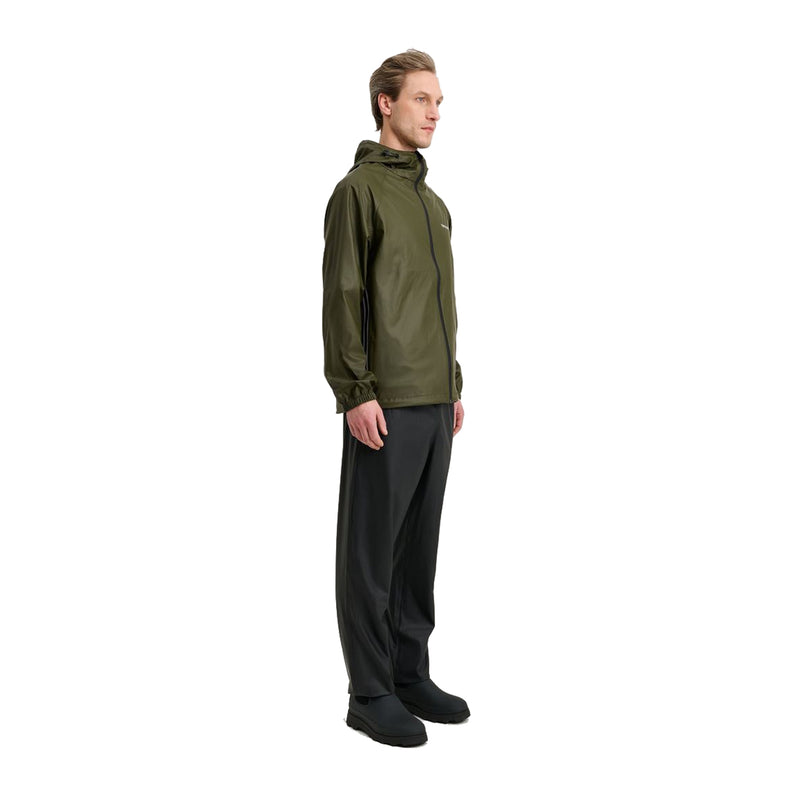 The jacket boasts an adjustable hood, hem, and cuffs to seal out the elements, while the pants feature an elasticated waist and ankle cuffs for a secure fit. Zippered pockets on both the jacket and pants offer safe storage for essentials. When the weather clears, the set packs neatly into its own pocket, making it easy to carry in a backpack or tote.