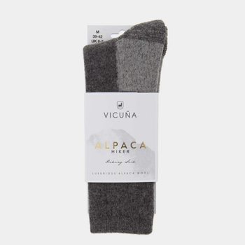 The Vicuna Hiker are socks made with luxurious Alpaca wool. Alpacas have developed natural fibres which have unique properties due to microscopic air pockets found within. These pockets allow breathability in warm temperatures and can trap body heat in cold weather. A great gift idea, these super soft and warm socks are perfect for a range of adventures.