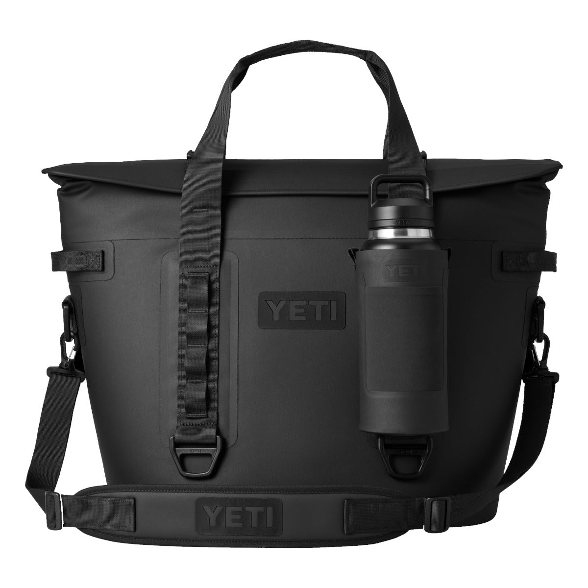 Keep your H20 close at hand with the new YETI Rambler Bottle Sling. The Large size is designed to hold either the 23oz or 36oz bottle with a comfortable shoulder strap to keep things hands free. With a front pocket perfect for storing your cash or card the Sling will also attach to selected soft coolers from YETI.